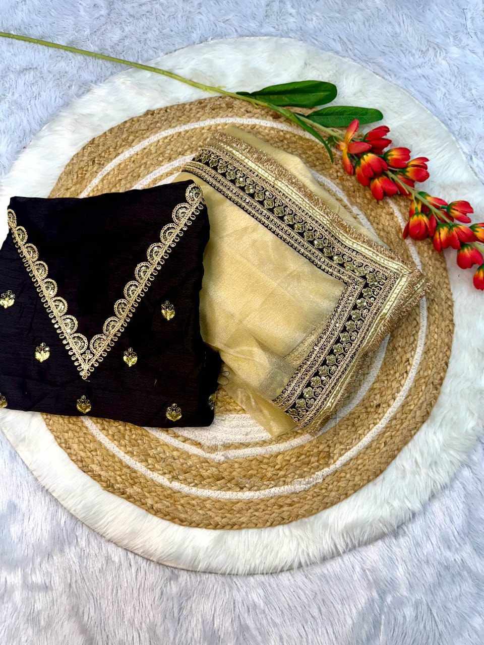 | Name : | RC Cream Twill Net Designer Saree |