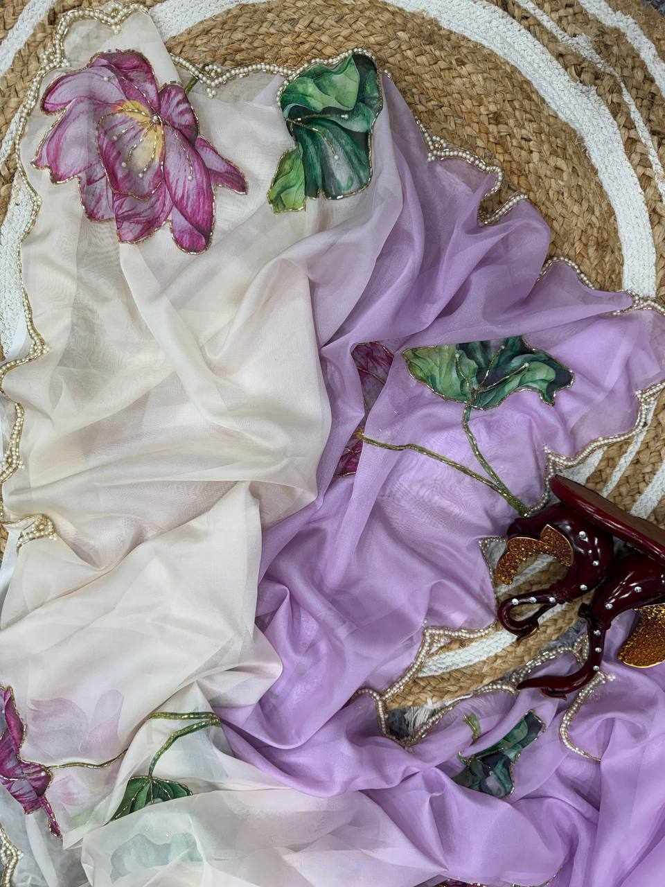 NC 5386 Soft Organza Beautiful floral print Saree