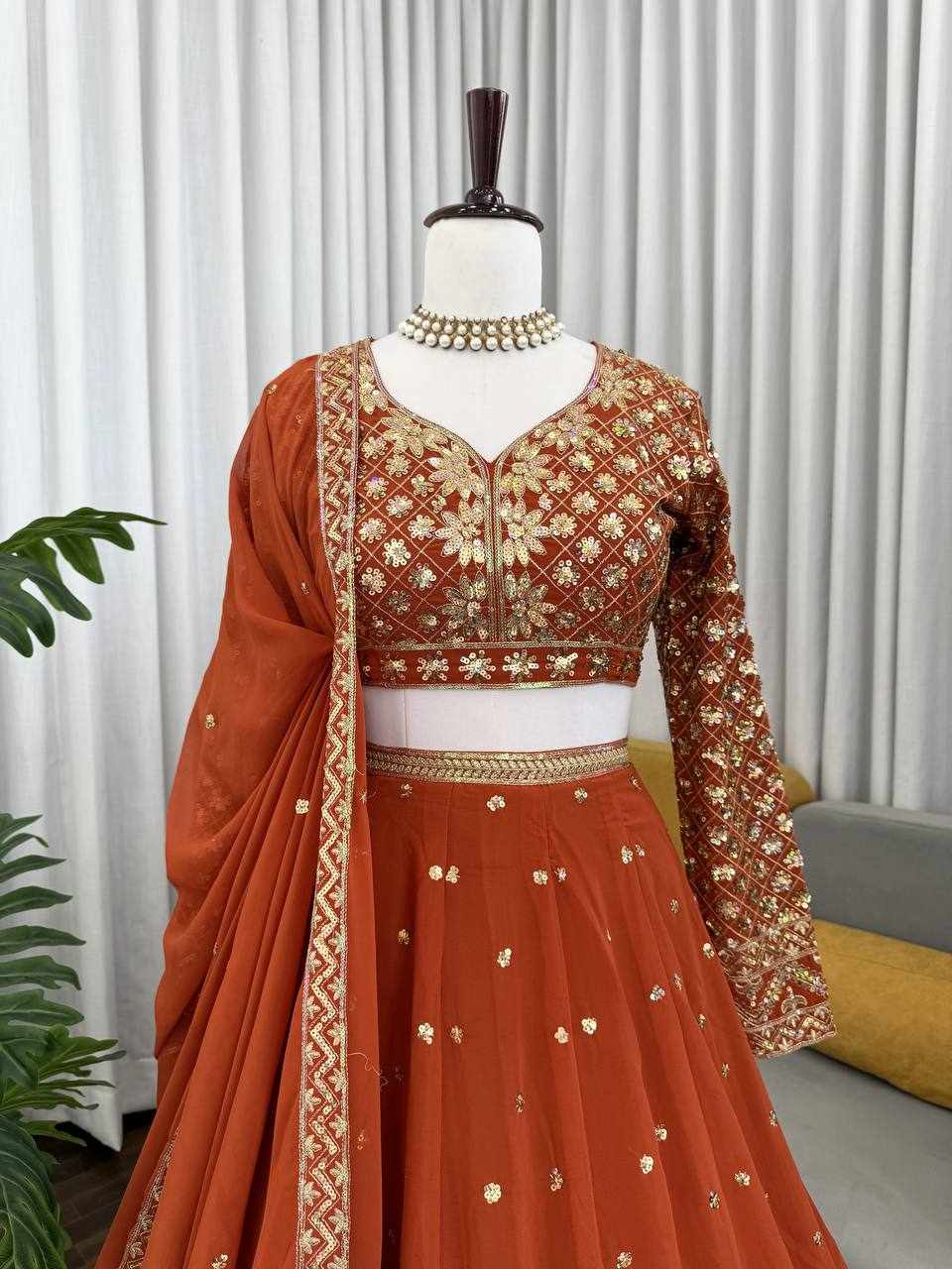 Home / QRC 375 Foux Gorgette Heavy Designer Lehenga