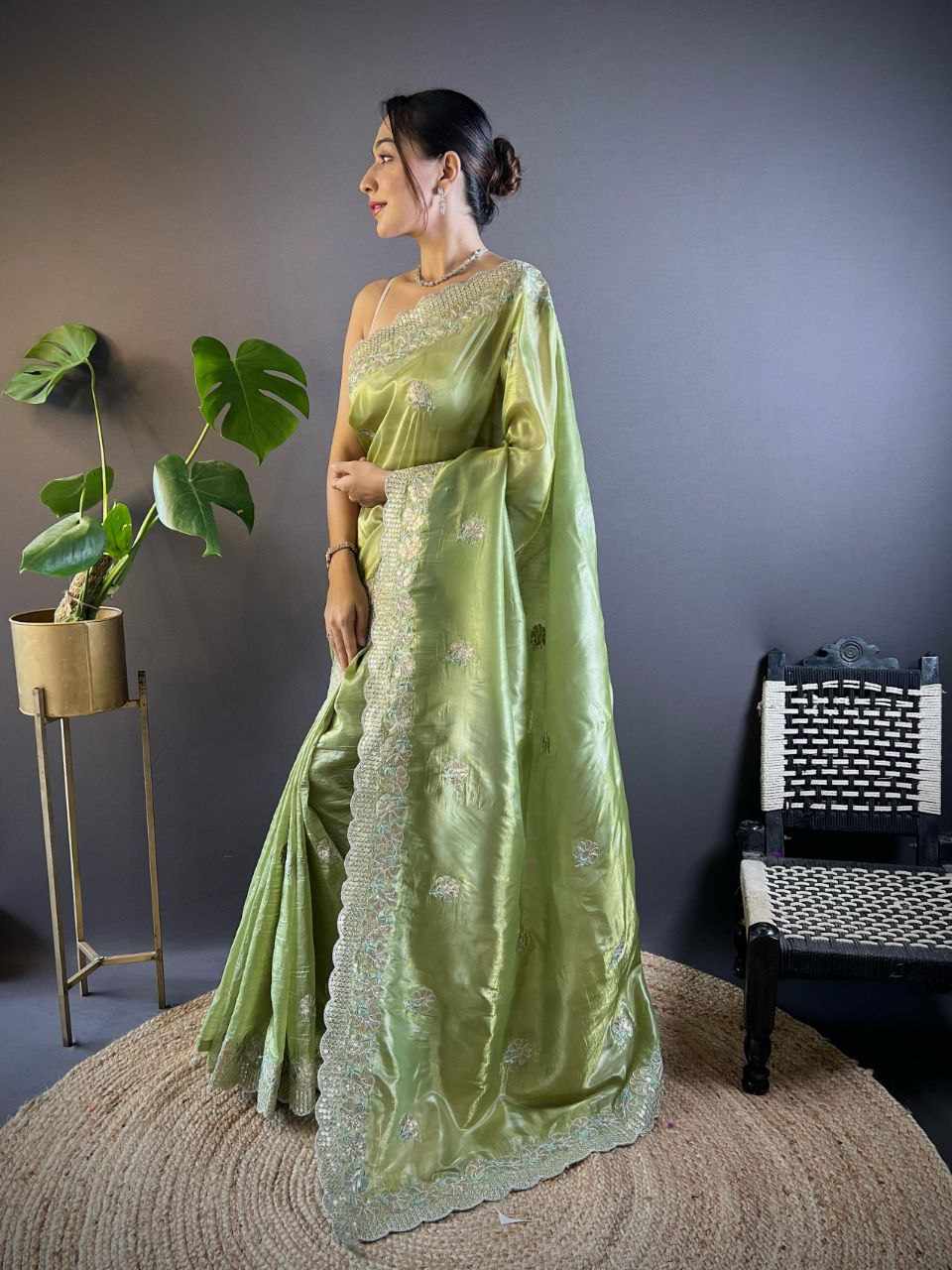 | Name : | RC 5084 Green Gold Crunchy Designer Saree |