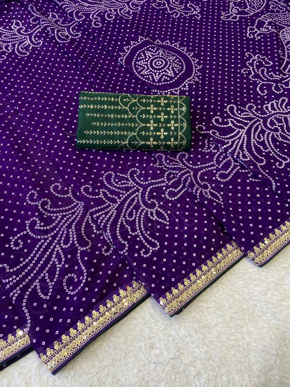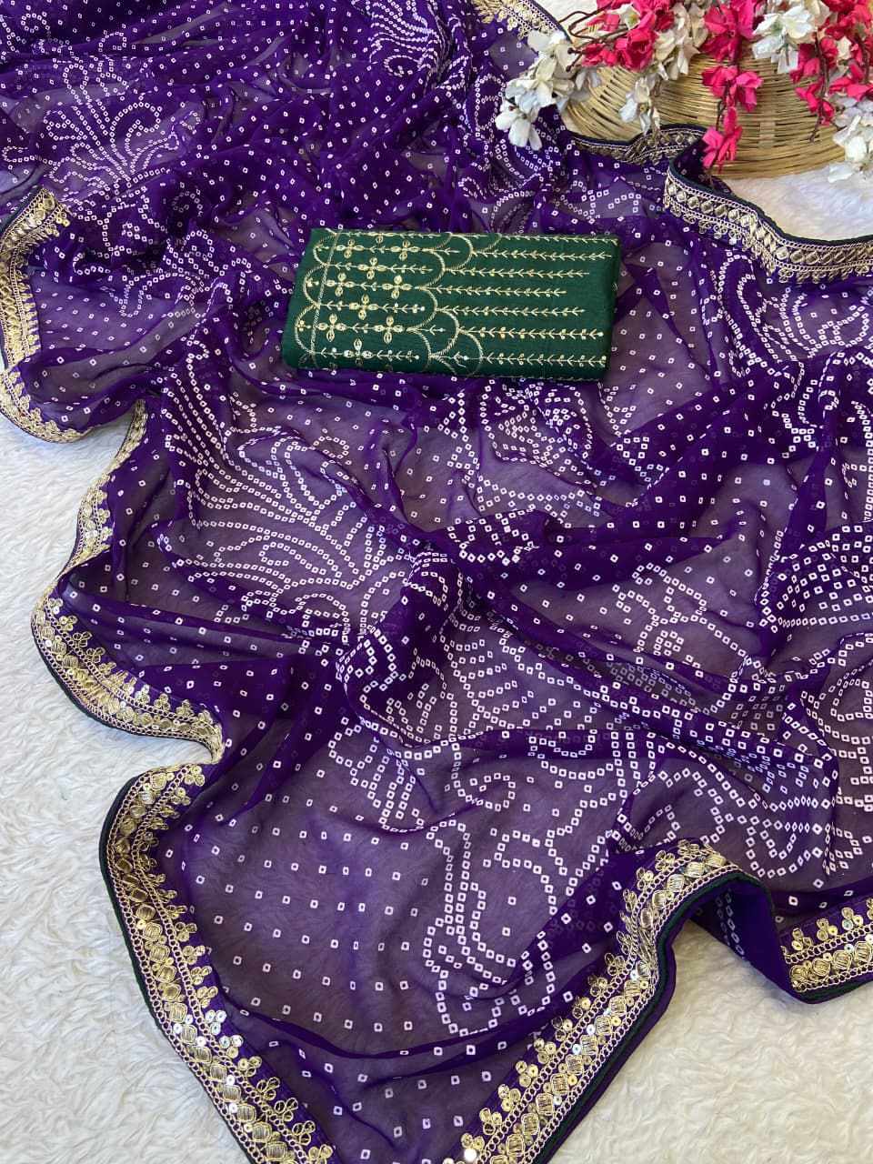 RC Purple Bandhej Georgette heavy Coding Sequence border Saree