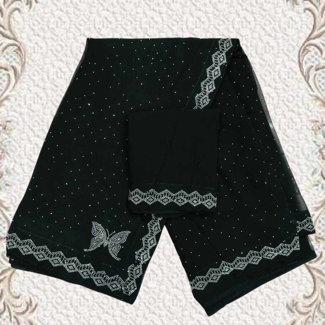 Reviews for S4s Black Siroski Butterfly Stones Lace Georgette Party Wear Saree