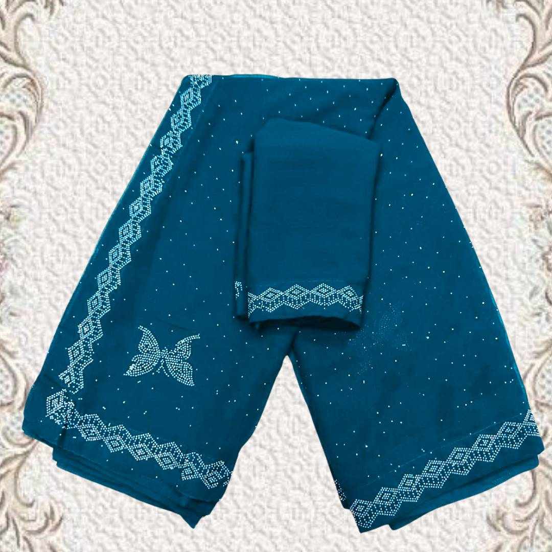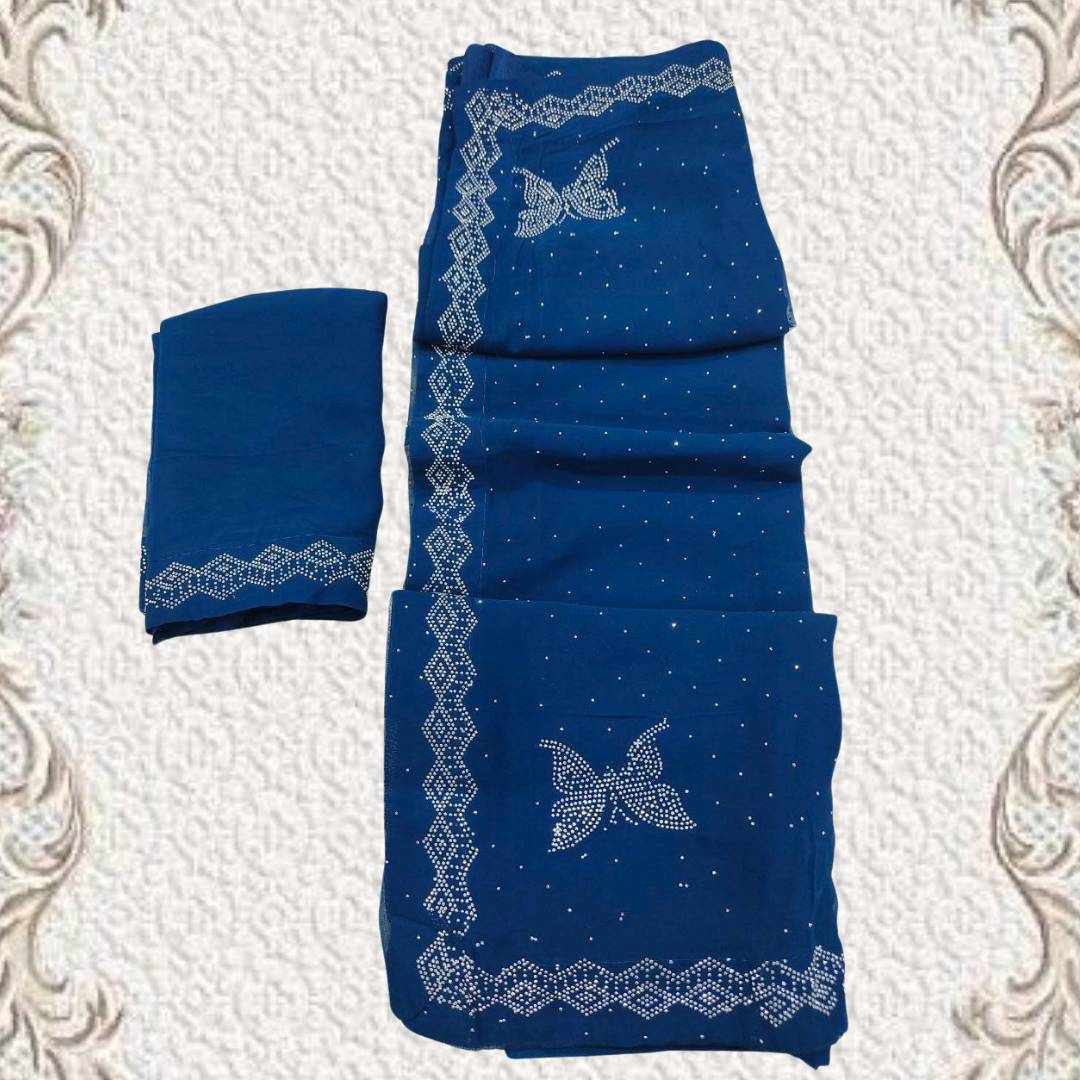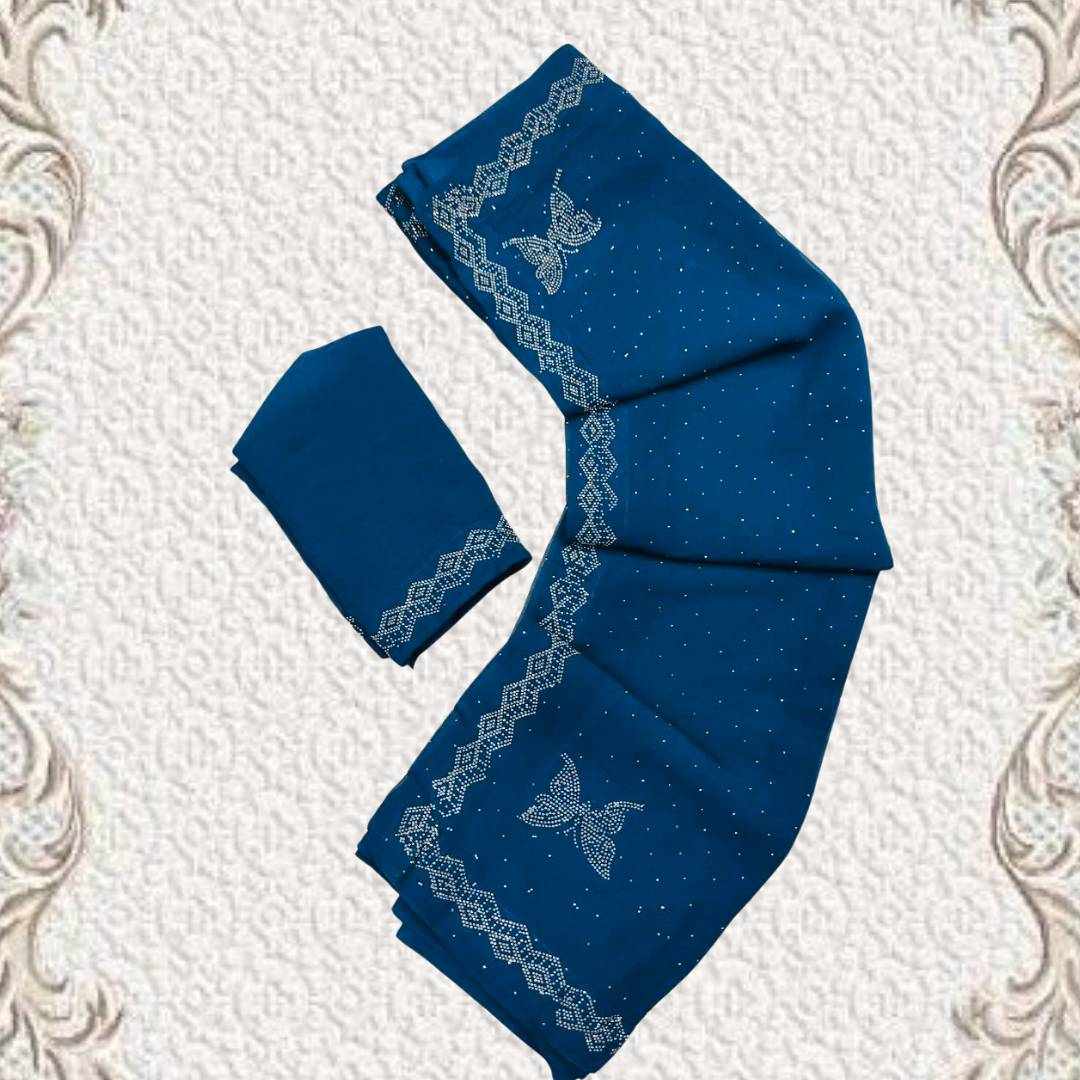 | Name : | S4s Petrol Blue Siroski Butterfly Stones Lace Georgette Party Wear Saree |