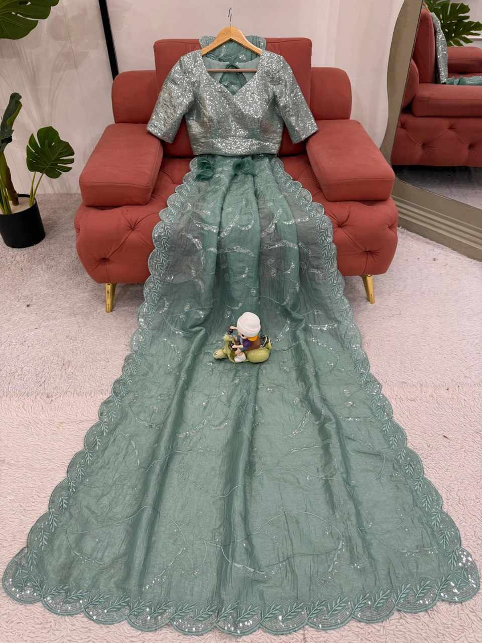 | Name : | SP 19 Gold Crush Sequnce work Saree |